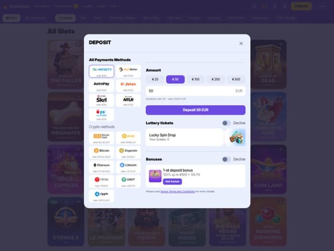 Goodman Casino 是一家由 Dama NV 拥有和运营的在线赌场,这家加密货币友好型场所持有库拉索许可证。