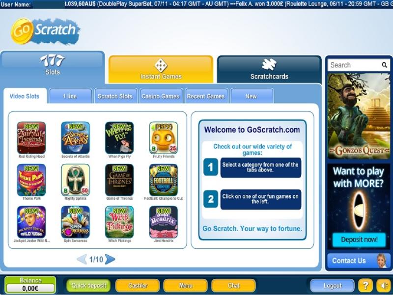 GoScratch Casino 由 Amaya, Net Entertainment, lightningboxgames, Play'n GO, Quickspin, Aristocrat, NeoGames and NextGen提供支持,并且赌场的游戏通过基于网络的平台提供。Slots