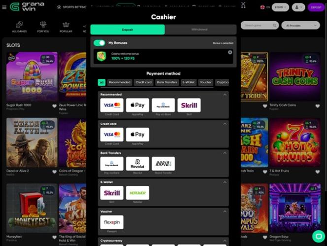 GranaWin是一家设施完善的在线赌场,于2024年上线,凭借其丰富的赌场游戏和体育博彩选择,以及包含丰厚奖金和奖品的强大促销活动,吸引了大量来自加拿大、德国、瑞士和奥地利的玩家。该品牌拥有海量的老虎机、真人荷官、桌面游戏和刺激的电子游戏,供玩家尽情畅玩。