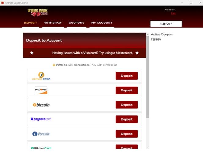 Grande Vegas 赌场由 Real Time Gaming and Spinlogic Gaming提供支持,为全球玩家提供数十款游戏。您可以通过可下载的软件或支持即时游戏的网络平台访问该赌场。