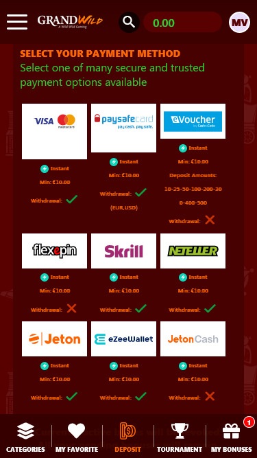 在 GrandWild 赌场寻找老虎机的玩家会发现,这里有数十台视频老虎机和一系列经典的三卷轴游戏。赌场还提供一系列累积奖金,随时都有数百万美元的奖金等着您来赢取。
