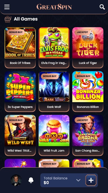 正如我们提到的,这个网站的组织相当完善,主要游戏类别是赌场和真人娱乐场。这两个类别都包含子类别,例如购买奖金、老虎机、Megaways、Crash Games、轮盘赌、二十一点等等。