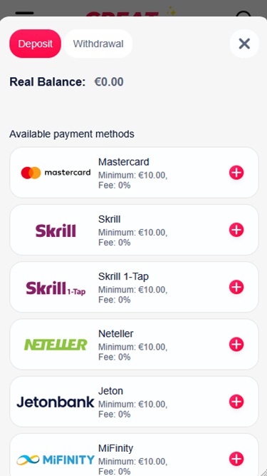 赌场服务面向国际,但 GREATwin 赌场主要面向来自德国、芬兰、挪威、波兰、奥地利和瑞士的赌客。