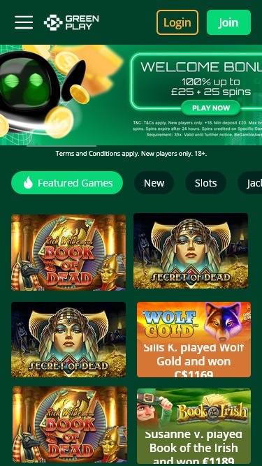 Greenplay 赌场针对桌面和移动设备进行了跨平台优化,但不得不提的是,桌面版在页面顶部(赌场标题下方)有一个固定的导航栏,这似乎有点过时。除此之外,我们发现该平台非常漂亮,易于导航,注册流程快速简单。