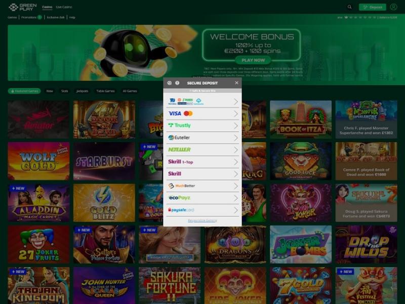 Greenplay 提供多种流行的存款和取款方式,包括电子钱包、电汇和支付卡。