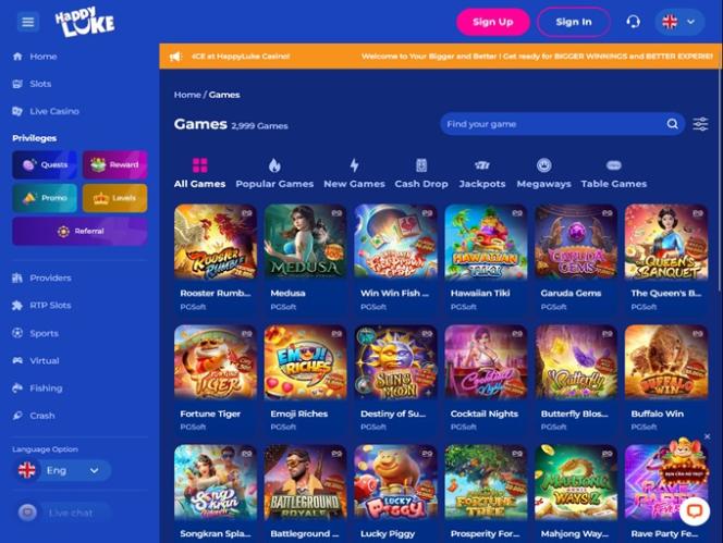 除了标准的赌场游戏外,Happy Luke 还为玩家提供完整的真人荷官赌场以及各种即赢游戏。