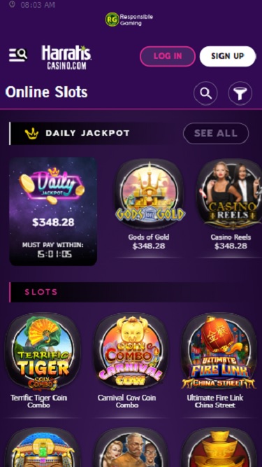 Harrah's Casino 由 Net Entertainment, Barcrest, Big Time Gaming, lightningboxgames, Yggdrasil, IGT, Shuffle Master, Ainsworth, Bally Technologies, NextGen, WMS, Inspired Gaming, Gaming Realms, SG Interactive, Red7Mobile, Scientific Games, Side City Studios, Betdigital, Reflex Gaming, High 5 Games and ReelPlay提供支持,赌场的游戏通过基于网络的即时播放平台提供,该平台可通过桌面和移动平台提供。