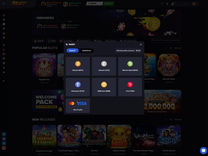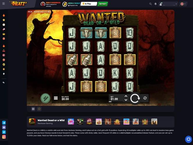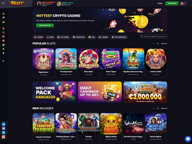 Heatz 采用精美设计的主题和功能齐全的现代化赌场平台。所有设备(包括便携式和台式电脑)均可访问游戏内容,无论您是 PC 玩家还是喜欢随时随地畅玩在线赌场游戏,都能获得绝佳的博彩体验。