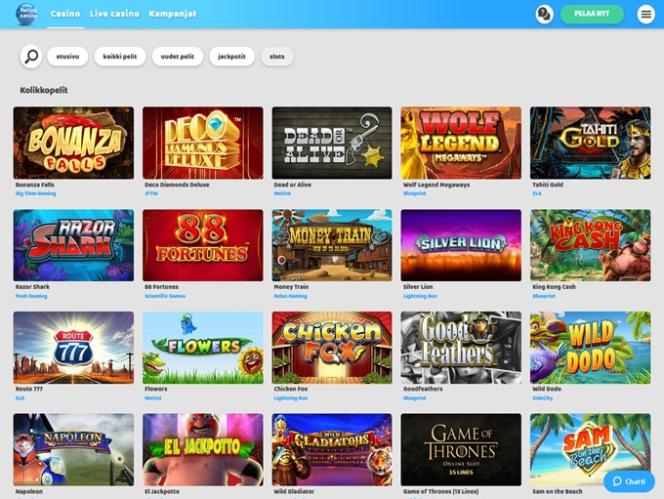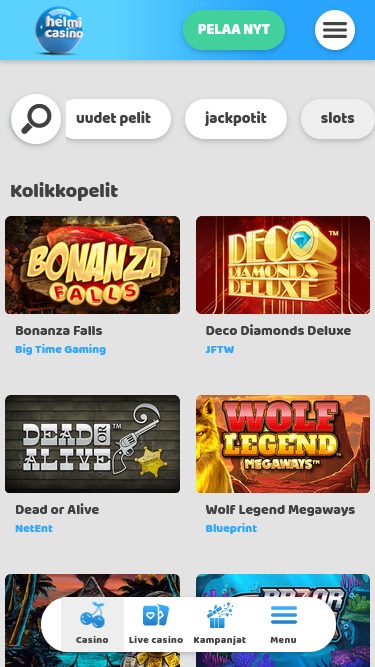 正如我们已经提到的,Helmi Casino 的游戏库充满了由行业大公司设计和创建的吸引人的赌场游戏,例如:NetEnt、Quickspin、Yggdrasil……这些公司以及许多其他游戏工作室为赌场的游戏系列提供了顶级游戏,保证带来很多刺激和娱乐。