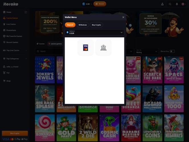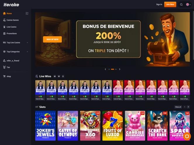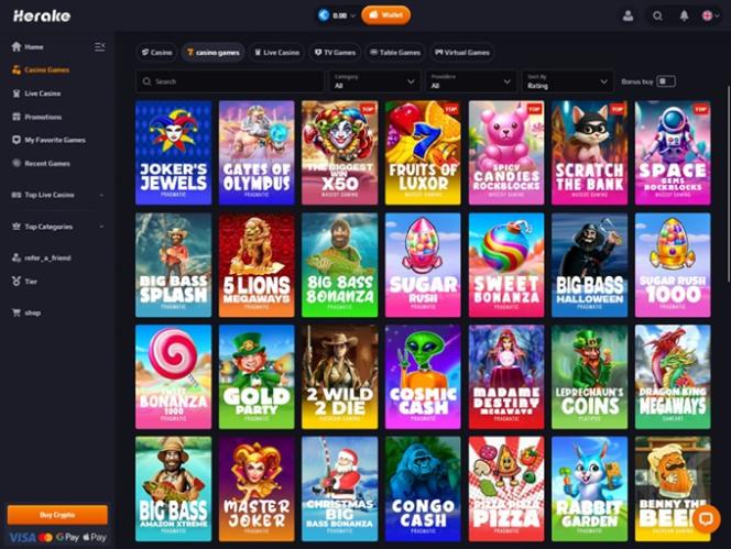 Herake 紧跟行业潮流,拥有丰富多样的老虎机游戏库,可满足各种类型的玩家需求,无论其水平高低。赌场的经典游戏和最新潮的游戏应有尽有,确保每位玩家都能找到心仪之选,尽享娱乐。