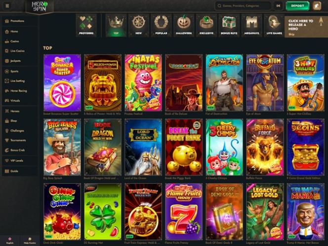 HeroSpin Casino 与近150 家在线赌场软件供应商合作,可以说,他们确保了会员在这里能够找到他们想要的一切。在竞争如此激烈的市场中,提供丰富的游戏种类对所有在线赌场运营商都至关重要,而 HeroSpin Casino 做到了这一点,确保每位玩家都能找到自己喜欢的游戏。