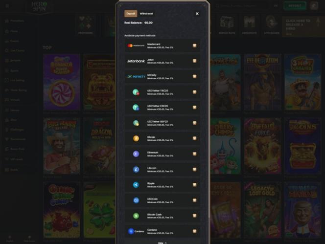 HeroSpin是一家对加密货币友好的在线赌场,其会员可以使用加密货币支付方式和流行的数字货币进行金融交易,包括ADA(卡尔达诺)、BCH(比特币现金)、BTC(比特币)、ETH(以太坊)、LTC(莱特币)、USDC(美元币)、USDT(泰达币)……