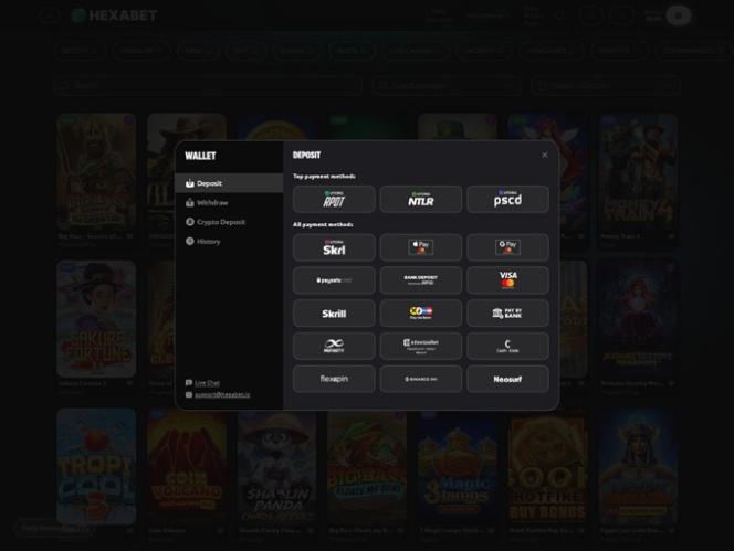Hexabet Casino 还专门为即时游戏和速成游戏设立了专区,为喜欢快速游戏、无需技巧或投入太多精力的玩家提供了绝佳选择。不妨试试Plinko、Aviatrix、Limbo XY、Penalty Shoot-Out 和 Meteoroid。