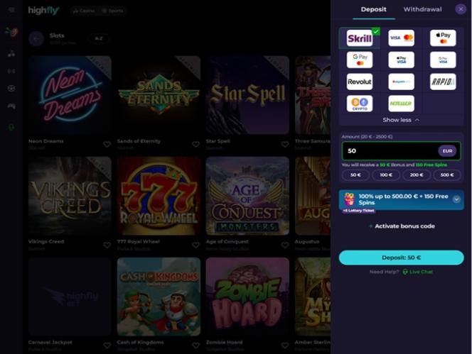 在此之前,让我们快速提一下,注册流程超级快捷简单,只需填写基本信息即可访问玩家控制面板。选择促销代码并兑换迎新礼包后,如果您愿意,很快就能开始进行真钱投注,并畅享赌场丰富的游戏库。游戏库内容丰富,涵盖各种游戏类型、各种可靠的银行业务方式、超值的促销优惠等等。