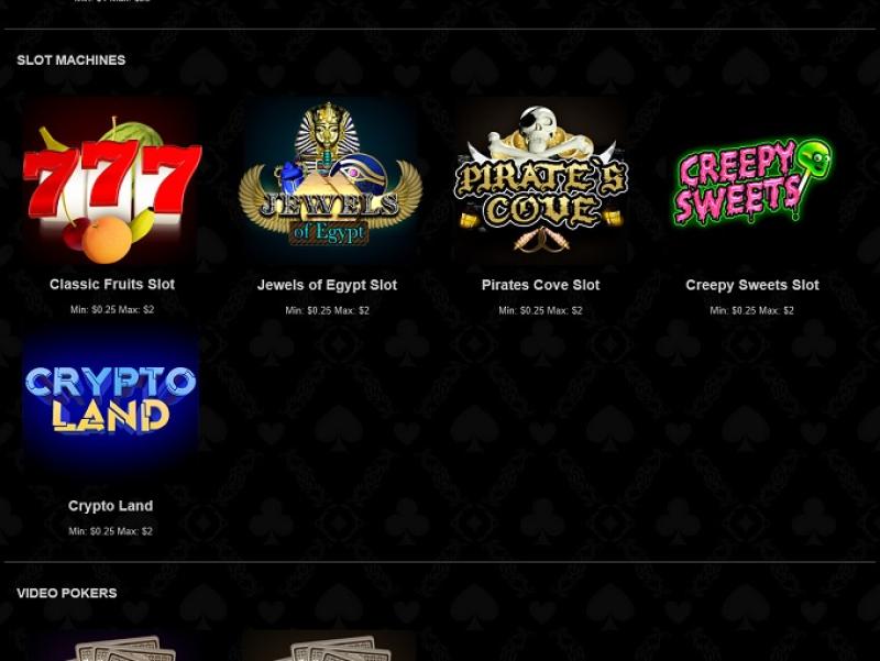可用的游戏有:二十一点、777、Jacks or Better VP、美式轮盘赌、Craps Vegas Casino、埃及珠宝、百家乐、Beat the Bookie、Deuces Wild、Pirate's Cove 和 Creepy Sweets。