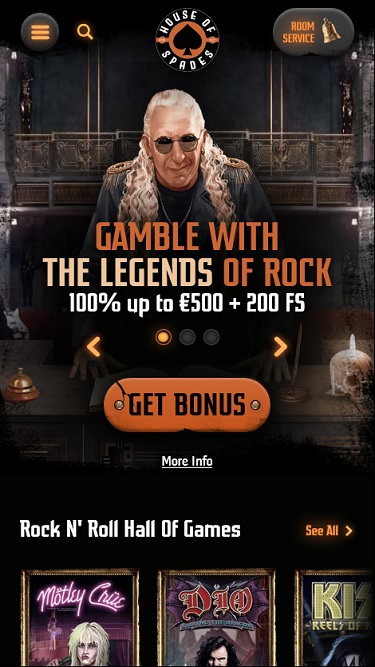 别惊讶!House of Spades 赌场设有摇滚游戏老虎机子版块,其中包括:Monsters of Rock Megaways、Danger! High Voltage、The Final Countdown、Lil Devil、Parrots Rock、Punk Rocker、Rockstar、Music Stage、Feel The Music、Rock the Cash Bar、Slots Angels、Rock the Reels Megaways、Spinning Lights 等等。