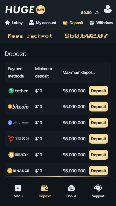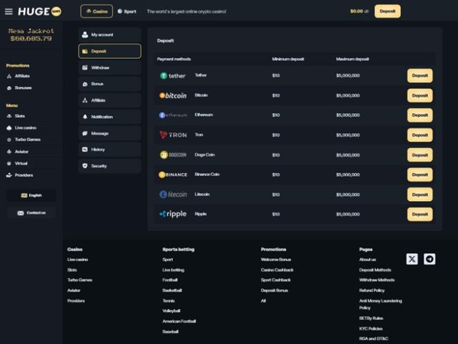 HugeWin Casino 由库拉索博彩管理局监管并授权。该运营商欢迎来自加拿大、芬兰和德国的玩家加入其博彩平台,享受丰富的游戏选择。