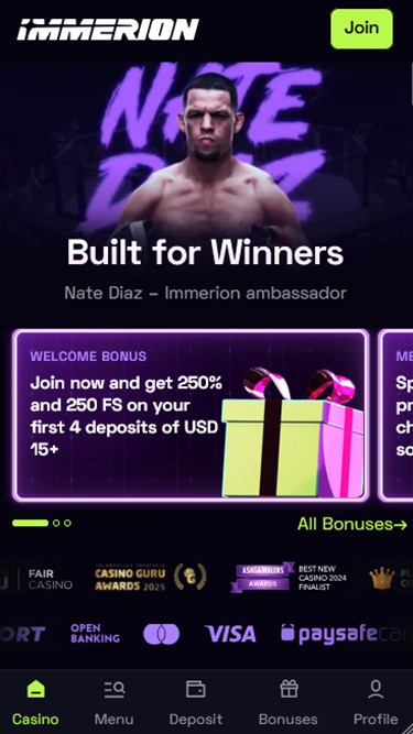 Immerion 还提供值得注意的欢迎优惠,因此如果您刚刚注册了一个新的赌场账户,您将收到一个欢迎礼包,可用于您在赌场的前四次存款。