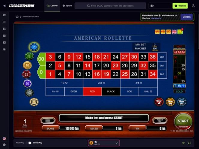 - Immerion 赌场不设最低存款限额。此外,每月提款限额也令人满意。VIP 级别决定提现条件,运营商保留根据玩家的赌场活动调整限额的权利。