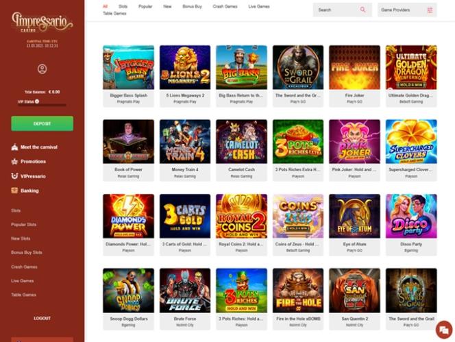 例如, Impressario Casino 拥有超过 120 家软件开发商组成的庞大阵容,从而形成了一个庞大的游戏库,其中包含数千款独特的游戏供您畅玩。这里总有一款适合您;即使是最资深的玩家也能轻松找到他们想要的游戏。