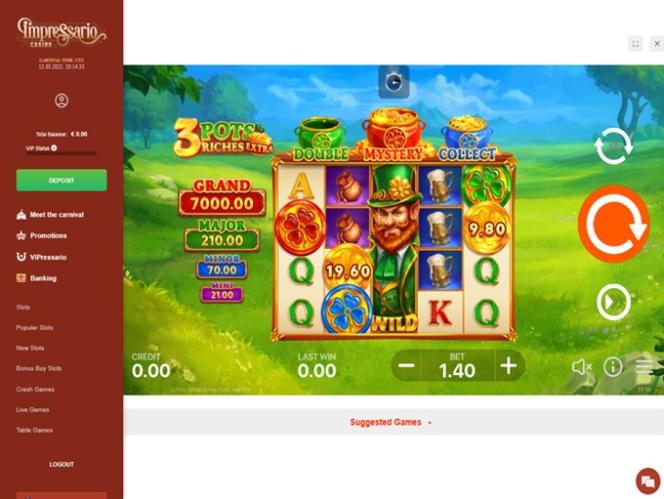 想要体验在线老虎机的玩家,Impressario Casino 绝对是您的理想之选。该品牌提供种类繁多的真钱老虎机游戏,涵盖各种游戏类型、机制、主题和功能。我们推荐以下几款热门老虎机游戏: