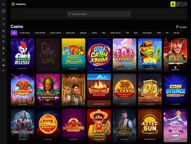 正如我们之前提到的,Instasino Casino 与许多知名的 iGaming 品牌合作,包括NetEnt、 Quickspin 、Relax Gaming、Endorphina、 Pragmatic Play以及近百个其他可用品牌。这些合作伙伴关系确保玩家可以享受各种游戏类型,包括崩溃游戏、累积奖金、彩票、老虎机等等。