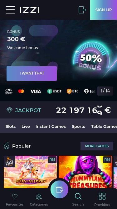 此外,还有各种每周奖金、充值奖金、现金返还、生日奖金和其他奖励优惠。别忘了精彩的在线老虎机锦标赛和Izzi彩票。