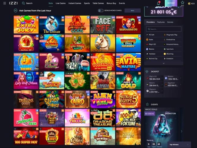 赌场平台的组织非常完善,找到合适的游戏毫不费力。但找到符合您口味的游戏,不仅仅取决于网站的易用性,还取决于其丰富的老虎机游戏选择。Izzi Casino 提供一流的在线老虎机游戏,这些游戏很容易成为您的下一个心头好。