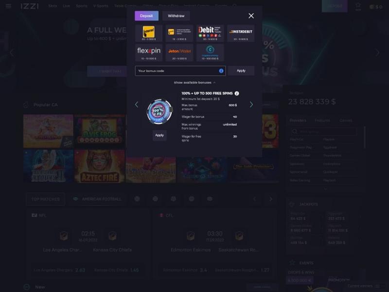 Izzi Casino 提供多种支付方式。玩家可以使用支付卡、电子钱包或流行的加密货币银行选项。