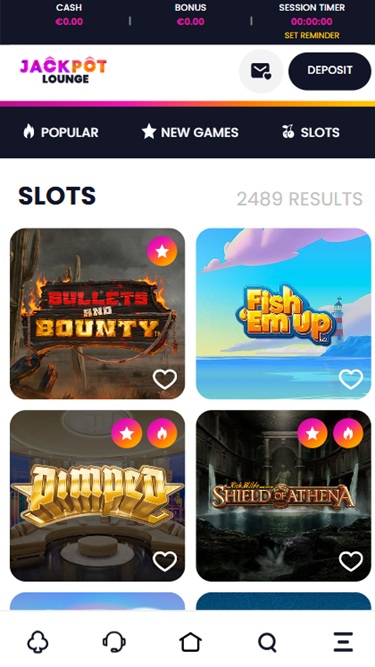 Jackpot Lounge 还针对移动赌博体验全面优化了其网站,这意味着您可以在 iOS 和 Android 设备上自由玩所有赌场游戏并浏览所有网站部分,不会出现任何问题,也无需下载任何其他应用程序。
