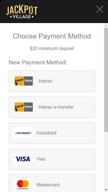如果您是完全转向加密货币赌场银行服务的玩家之一,您可能会有些失望,因为 Jackpot Village 赌场不支持加密货币。不过,还有很多其他选择,包括借记卡和信用卡、Skrill 和PayPal等电子钱包、电汇和其他流行的支付系统。提款时间一般。