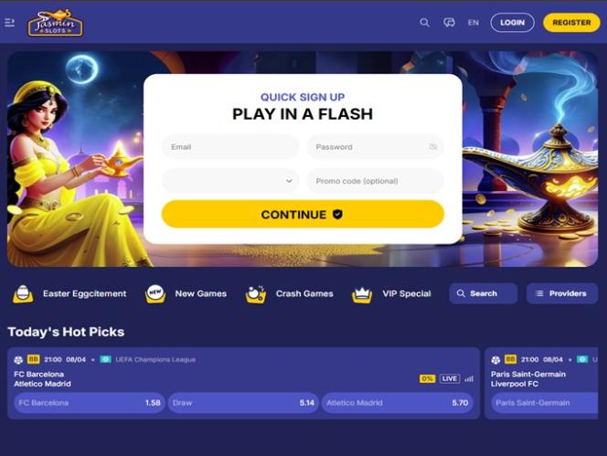 受《一千零一夜》民间故事的美学和故事的影响,JasminSlots 在线赌场配备了所有必要的工具,让赌场玩家和体育博彩玩家在逗留期间都能感受到欢迎和尊重。