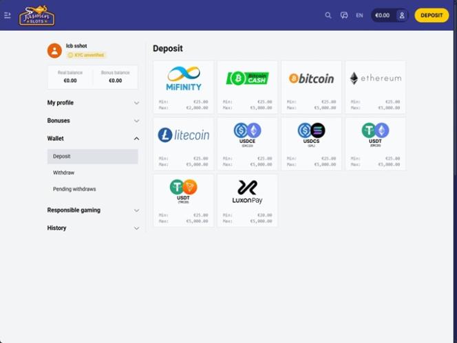 如果是第一次来这里,需要说明的是,JasminSlots 赌场完全支持所有主流加密货币,除了丰富的游戏和体育博彩项目外,它还拥有大量引人入胜的内容,可供长时间游戏。