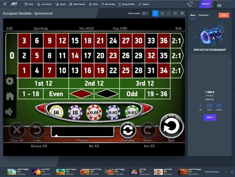 Jet 赌场提供桌上游戏:3D 轮盘赌、二十一点、美式轮盘赌、欧式轮盘赌、3 手赌场德州扑克、加勒比扑克、百家乐、骰宝等。