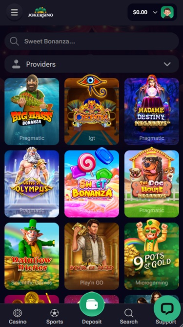 Jokersino Casino 是一个在线博彩平台,玩家可以在这里畅玩来自一些热门软件工作室的各种老虎机游戏。这里有超过两千款老虎机游戏可供选择,包括《Gates of Olympus》、《Sweet Bonanza》、《Madame Destiny Megaways》、《Starburst》、《Great Rhino Megaways》、《Buffalo King Megaways》、《Wolf Gold》、《Starlight Princess》、《The Dog House Megaways》、《Sweet Bonanza Xmas》、《Extra Juicy Megaways》、《5 Lions Megaways》、《Chilli Heat》、《John Hunter and the Tomb of the Scarab Queen》等热门游戏,以及其他一些有趣的游戏。