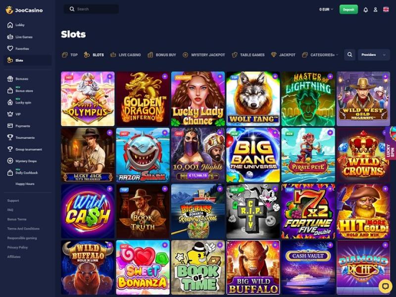 Joo Casino 由 Microgaming, Net Entertainment, Playtech, BetSoft, 1x2gaming, Amatic Industries, Big Time Gaming, ELK Studios, Evolution Gaming, Ezugi, Habanero Systems, iSoftBet, lightningboxgames, Novomatic, Oryx, Play'n GO, playson, Quickspin, Rabcat, Relax Gaming, SOFTSWISS, Thunderkick, Vivo Gaming, Yggdrasil, Endorphina, Wazdan, Realistic Games, GameArt, Betgames, Booming Games, Pragmatic Play, Nolimit City, Red Tiger Gaming, Booongo, Spinomenal, Felix Gaming, Red Rake Gaming, Skillzzgaming, Fugaso, Belatra Games, Fantasma Games, Kalamba, Revolver Gaming, Platipus Gaming, Nucleus Gaming, Skywind, Spinmatic, Spadegaming, Triple Edge Studios, BGAMING, Northern Lights Gaming, Fazi, Evoplay, Stormcraft Studios, IGTech, Switch Studios, OneTouch, Electric Elephant Games, Pocket Games Soft, Bulletproof Games, All41 Studios, Mascot Gaming, TVBet, NetGame Entertainment, Gameburger Studios, Pulse 8 Studios, Slot Factory, Neon Valley Studios, Golden Rock Studios, Spearhead Studios, Swintt, TrueLab Games, SpinPlay Games, Mancala Gaming, 7Mojos, SmartSoft Gaming, KA Gaming, Atmosfera, Real Dealer Studios, GONG Gaming, Blue Guru Games, Lady Luck Games, Holle Games, Buck Stakes Entertainment, Caleta Gaming, mplay, Games Global, Reevo, Amusnet Interactive, Wizard Games, 2by2 Gaming, Ash Gaming, Blueprint Gaming, CT Interactive, Greentube, Igrosoft, Leander Games, Merkur Gaming, Pariplay, Push Gaming, Tom Horn Gaming, Gamomat, RFranco Group, Mr Slotty, Reel Time Gaming, MGA, Authentic Gaming, Bally Wulff, Iron Dog Studio, Old Skool Studios, Foxium, Just For The Win, Reflex Gaming, PearFiction Studios, Wild Streak Gaming, Slingshot Studios, Golden Hero, Fortune Factory Studios, Jade Rabbit Gaming, RubyPlay, 4ThePlayer, AvatarUX, Gamevy, Crazy Tooth Studio, High 5 Games, ReelPlay, Japan Technicals Games, Alchemy Gaming, Rarestone Gaming, Plank Gaming, Vibra Gaming, Black Pudding Games, Snowborn Games, Boomerang Studios, Hacksaw Gaming, Max Win Gaming, Gold Coin Studios, Bang Bang Games, Gamzix, Half Pixel Studios, Arcadem, Slotmill, Triple Cherry, SilverBack Gaming, Peter And Sons, Absolute Live Gaming, Eurostar Studios, Aurum Signature Studios, Charismatic, Onlyplay, Gamebeat, FlipLuck, Area Vegas, RAW iGaming, Bombay Live, Leap Gaming, TaDa Gaming, Winfinity, 3 Oaks Gaming, Amigo Gaming, Apparat Gaming, Spribe, Print Studios, 1spin4win, Bet2Tech, Gaming Corps, HammerTime Games, BetSolutions, Four Leaf Gaming, INO Games, Nailed It! Games, Atomic Slot Lab, Neko Games, Reel Kingdom, Oros Gaming, Givme Games, Spinza, Popiplay, Live88, Zillion Games, Galaxsys, VoltEnt, Orbital Gaming, Turbo Games and Penguin King提供支持,其游戏通过基于网页的即时游戏平台提供,可直接通过您的网络浏览器加载。该赌场还支持移动游戏,这意味着您可以在任何有数据连接的地方使用智能手机或平板电脑进行博彩。