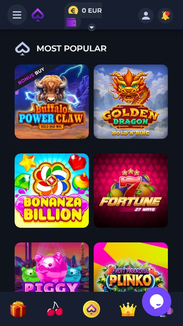 该品牌在左侧设有列表菜单,方便您更轻松地浏览游戏。此菜单可让您导航至特定的软件提供商、游戏、促销活动、活动、客户支持和其他重要页面。如果您希望阅读服务条款、负责任博彩功能和政策,请导航至网站底部。