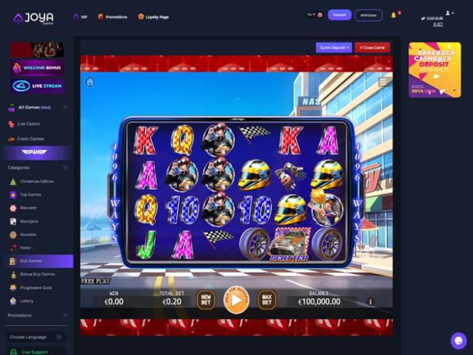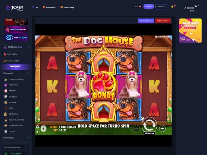 除了拥有丰富的真人荷官游戏选择外,Joya Casino 还拥有丰富的在线老虎机供玩家畅玩。凭借众多软件供应商的支持,Joya Casino 提供数百款顶级游戏供您畅玩,我们建议您尝试一下: