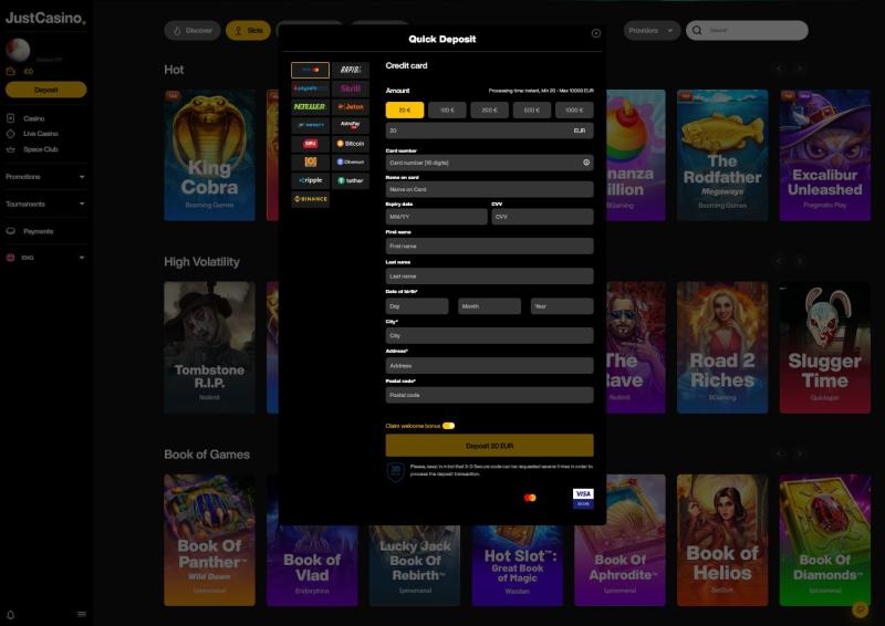 JustCasino 的常客还可以享受各种奖励机会,并通过现金返还、充值、每周奖金、奖金丰厚的锦标赛和其他惊人的优惠来提升他们的游戏体验。