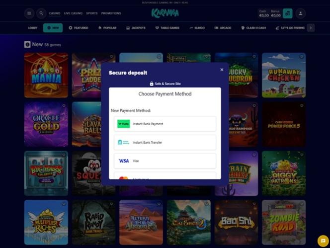 Karamba 赌场由 Microgaming, Net Entertainment, 1x2gaming, Barcrest, Big Time Gaming, ELK Studios, Evolution Gaming, EYECON, Ezugi, lightningboxgames, Oryx, Play'n GO, Relax Gaming, Thunderkick, Realistic Games, Stakelogic, Pragmatic Play, Red Tiger Gaming, IGT, Spinomenal, Red Rake Gaming, Fantasma Games, FunFair, SYNOT Games, Revolver Gaming, Skywind, Spinmatic, Triple Edge Studios, BGAMING, Northern Lights Gaming, Stormcraft Studios, Switch Studios, Pocket Games Soft, All41 Studios, Gluck Games, Gameburger Studios, Neon Valley Studios, Golden Rock Studios, Shuffle Master, SpinPlay Games, HungryBear Gaming, KA Gaming, GONG Gaming, Blue Guru Games, Buck Stakes Entertainment, Design Works Gaming, Games Global, Bally Technologies, Blueprint Gaming, Endemol Games, Leander Games, Merkur Gaming, NextGen, NYX Interactive, Push Gaming, Tom Horn Gaming, WMS, Inspired Gaming, Gaming Realms, SG Interactive, Red7Mobile, Scientific Games, Side City Studios, Reel Time Gaming, Bally Wulff, Iron Dog Studio, Foxium, Betdigital, Just For The Win, Storm Gaming Technology, PearFiction Studios, Wild Streak Gaming, Slingshot Studios, Fortune Factory Studios, 4ThePlayer, AvatarUX, Gamevy, Crazy Tooth Studio, ReelPlay, AGS Interactive, Alchemy Gaming, Black Pudding Games, Snowborn Games, Boomerang Studios, Gold Coin Studios, Bang Bang Games, Half Pixel Studios, Slotmill, Peter And Sons, Aurum Signature Studios, Lucksome Gaming, Area Vegas, RAW iGaming, Wishbone Games, Spribe, Print Studios, HammerTime Games, Four Leaf Gaming, INO Games, Nailed It! Games, Neko Games, Reel Kingdom, Oros Gaming and Light & Wonder提供支持,因此拥有庞大的老虎机游戏库。该赌场采用网页平台,这意味着您可以直接通过网页浏览器登录并进行游戏,无需下载任何软件。此外,我们还提供移动网站,方便随时随地畅玩。Baccarat