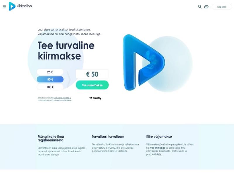 加入 Kiirkasiino 无需填写注册表格,因为赌场提供 Pay N Play 选项,玩家的账户会在通过第三方网关连接其银行账户后创建,因此非常快捷方便。这也是一种账户验证方式,玩家可以通过这种方式快速访问在线赌场游戏和赌场平台。