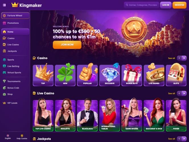 总而言之,Kingmaker Casino 在为客户提供直观的体验方面堪称典范。即使您是新手玩家,使用该网站也不会遇到任何问题。
