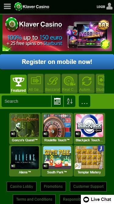 Klaver Casino 由 Net Entertainment, playson, Yggdrasil and Amusnet Interactive提供支持,其游戏通过基于网页的即时游戏平台提供,您可以通过网页浏览器直接访问。此外,还提供移动网站。Baccarat