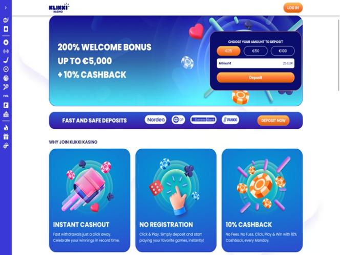 Klikki Kasino 是一个大型博彩网站,提供丰富的游戏选择,主要面向芬兰玩家。该品牌提供数千款在线老虎机、真人荷官、桌面游戏、速成游戏以及众多体育博彩选项,同时还提供丰富的促销计划,其中包含独特的奖金、奖励和回馈。