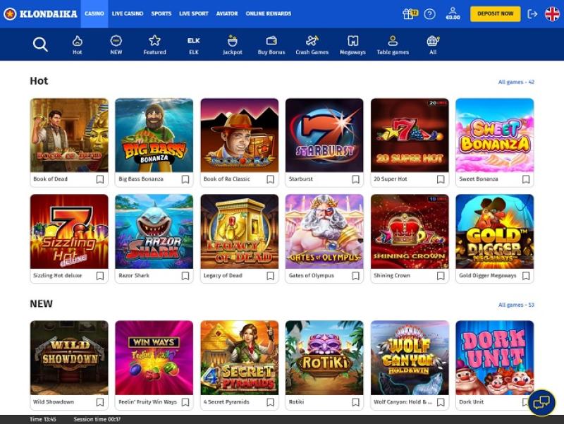 Klondaika 提供由 EZugi、iSoftBet、NetEnt、 Amusnet Interactive等众多知名公司打造的各类游戏,满足各种玩家的口味。让我们来看看一些热门赌场类别的游戏: