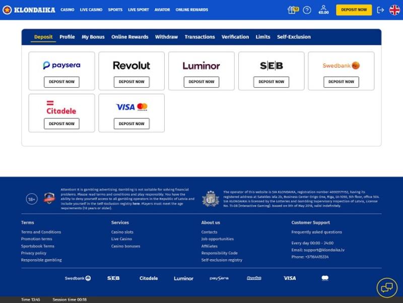 Klondaika 赌场是隶属于 Sia Klondaika 的在线博彩品牌。Sia Klondaika 是一家根据拉脱维亚法律成立的公司,总部位于拉脱维亚里加。该在线赌场受拉脱维亚彩票和博彩监督检查局监管并获得许可。