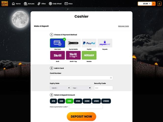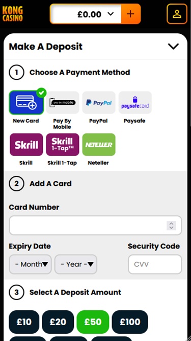 Kong Casino 由一家在英国受英国博彩委员会监管和许可的公司运营,在英国境外受奥尔德尼岛博彩管理委员会监管和许可。该品牌面向英国客户。