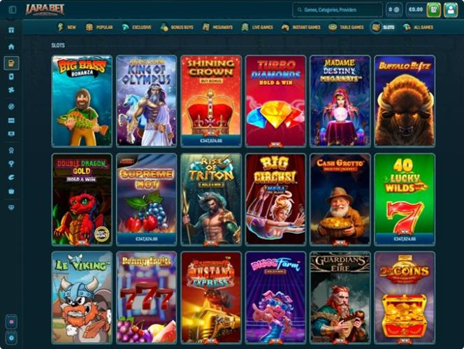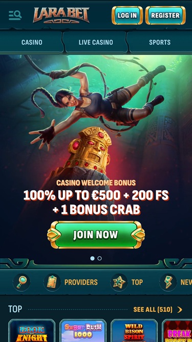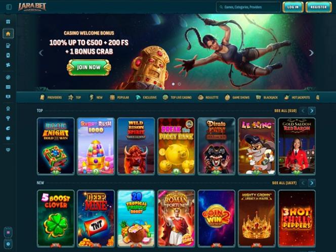 现在我们来详细聊聊这家赌场的视觉风格。Larabet 的设计灵感很大程度上来源于一款以勇敢的探险家劳拉·克劳馥为主角的著名游戏系列,因此,整个网站及其主角自然而然地与《古墓丽影》游戏中惊险刺激的世界非常相似。