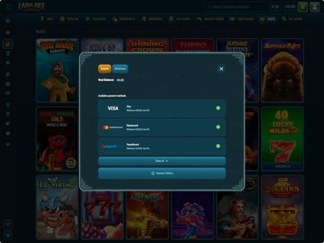 Larabet Casino 似乎已经根据这些事实进行了相应的调整,在其银行部分实施了几个流行的解决方案,因此来这里的玩家将有机会使用比特币、比特币现金、卡尔达诺、以太坊、莱特币、瑞波币、泰达币和美元币进行支付。