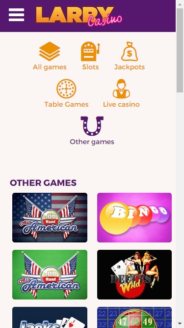 Larry Casino 由 Microgaming, Net Entertainment, BetSoft, ELK Studios, Play'n GO, Quickspin, Thunderkick, Games Global and NextGen提供支持,其游戏通过基于网页的即时游戏平台提供,玩家可以通过互联网浏览器访问游戏。该赌场还全面支持移动端游戏,您可以在智能手机和平板电脑上畅玩。